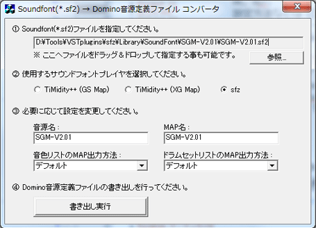 - sf2domino101.exe を起動して以下のように設定。